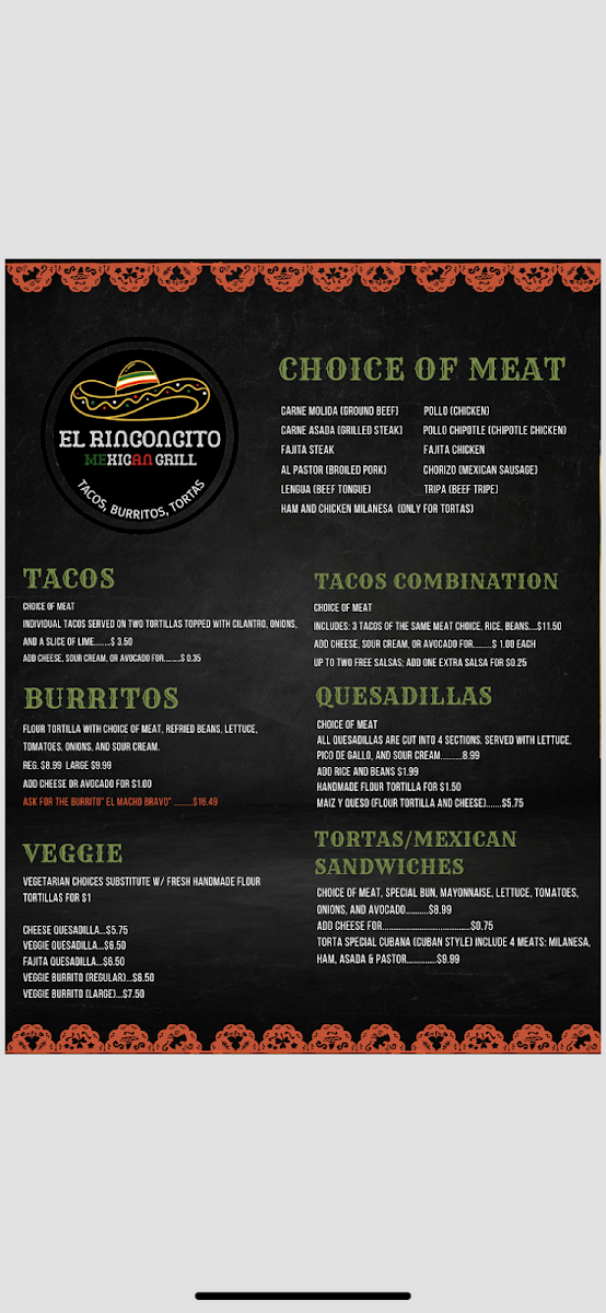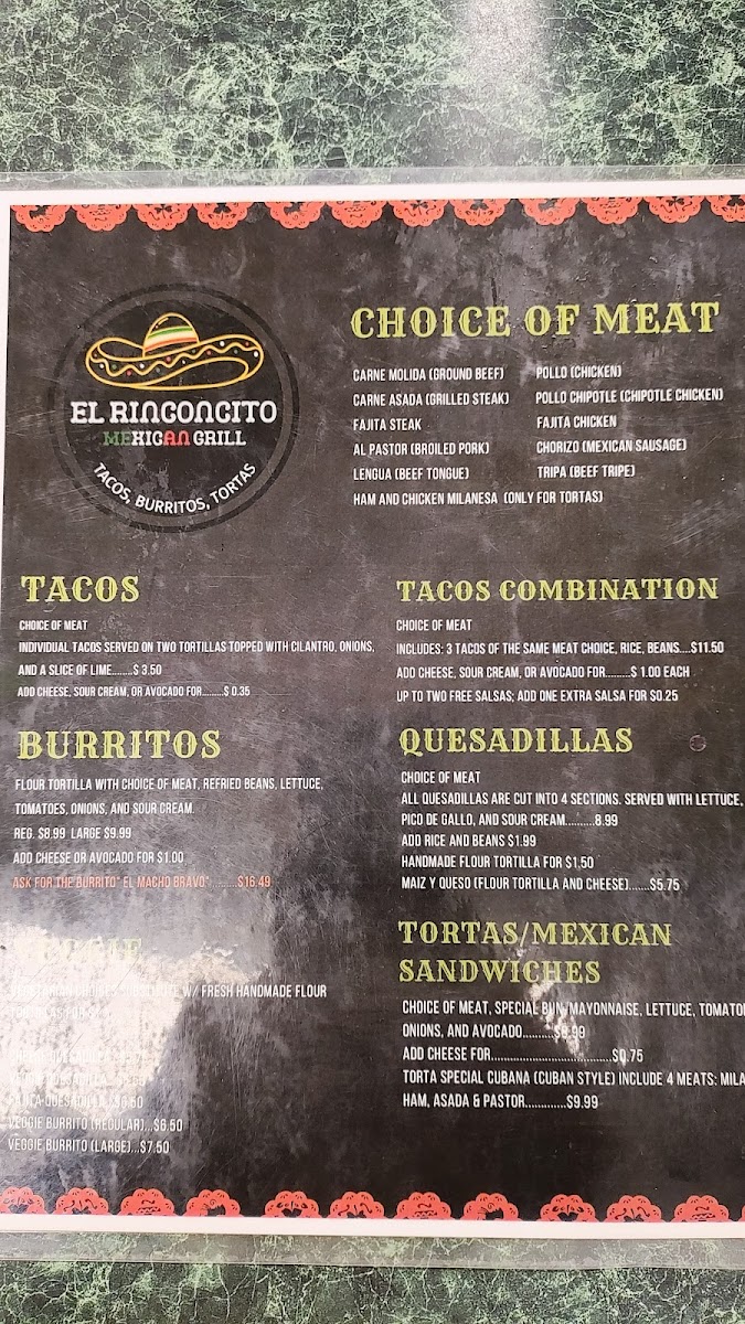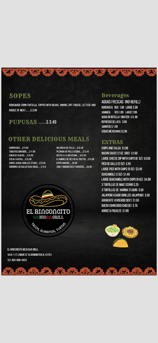 El Rinconcito Mexican Grill Menu